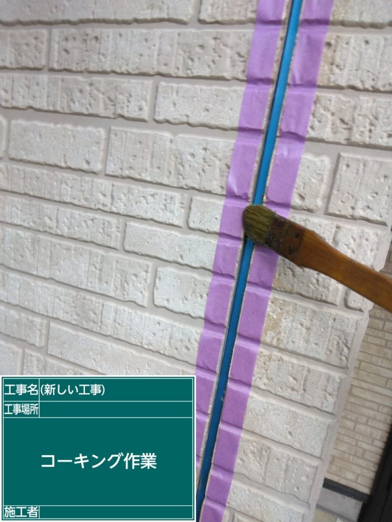 今回のシーリングは、超耐久性・超対候性プレミアムシーリングのダイヤモンドZ(ウレタンシーリング)を使用します。既存シーリングを撤去時に取り残しがないようにサイディング間の溝の内側も丁寧に削ぎ落します。次にマスキングテープ(養生)を貼り専用のプライマーを塗布します。